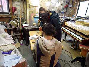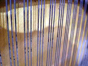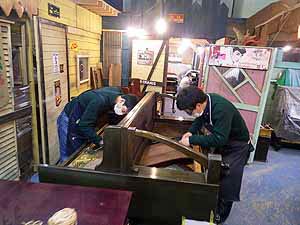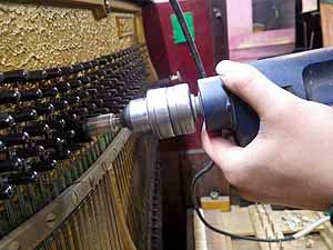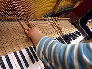 ピアノ本体を寝かしての作業 本体を寝かすと見えなかったところまで見えてくるのでこういう時にしっかり見ておきたい