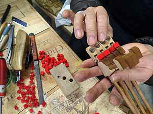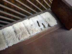 アクションの修理 とにかく古いものなので取扱も注意が必要だ 小さな部品は虫食いが多い バットにつくクッションフェルトの交換と