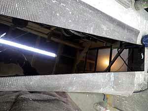 カワイKU2モデルクリーニング開始致しました、鍵盤蓋関係は白く曇ってしまっている、その下に亀裂クラックが入っている