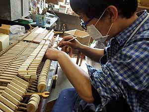 キーピンの磨きが終了したら磨き終えた鍵盤を本体に戻していきます