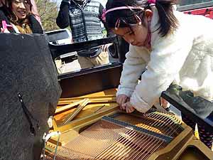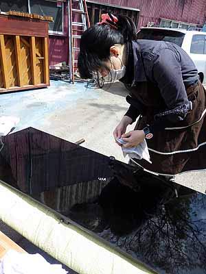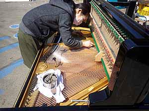 本日は天気も良く ピアノを外に引っ張り出して作業だ