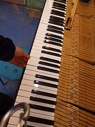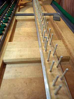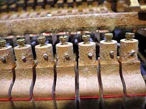 このピン軸として鍵盤は上下運動する、ピン自体錆びはじめるとたちまちタッチ感触に大きく影響するところにあり