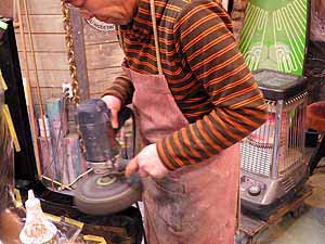 ペダルは青棒という固形の棒状の物をバフにつけて磨くのだ