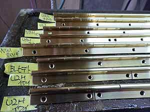 取り外したヒンジは磨きそのあとウレタン塗装が施される 取り外したヒンジビスは全て新しい物に交換される