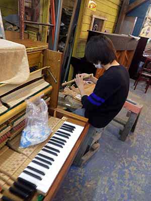 ピアノは寝かすことによりより細かいところまであらわに見えてくる 立てた時では見えなかったところまで見えるしっかりとチェック点検が必要だ