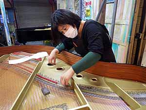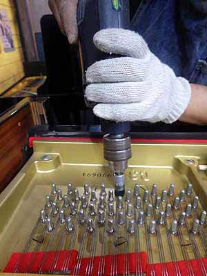 チューニングピン磨き作業