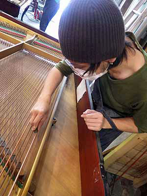 アクションの動きハンマー弦合わせ等の作業を緻密にとりおこなう