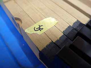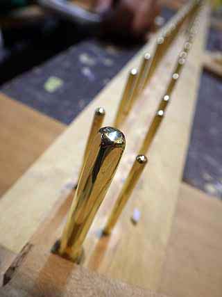 磨きこまれたキーピン関係、ここはタッチ感触に大きく影響するところに付ききれいに磨き上げる