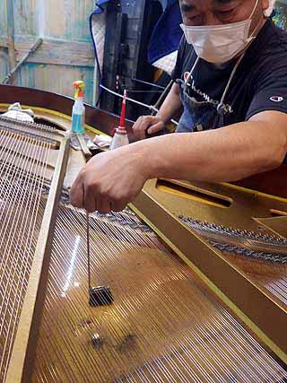 ぴあのチューニングピン磨き作業始まる