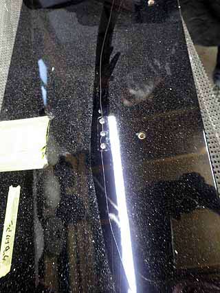 これは磨き前の譜面台傷が無数についている