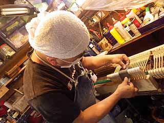 金属パーツは磨いたあと塗装が施されます