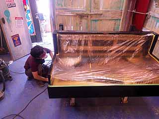 ピアノ本体を表に出して寝かしてさらにクリーニングとチェック分解