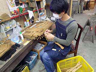 けん盤木口貼りこみ作業
