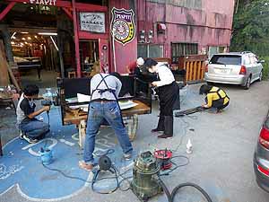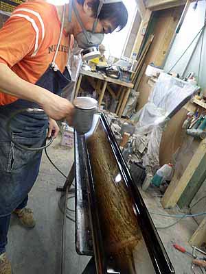 こちらは黒いピアノに木目を描くエイジングと言う作業だ