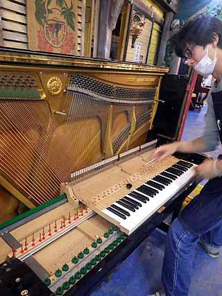 ひび割れの鍵盤張り替え作業