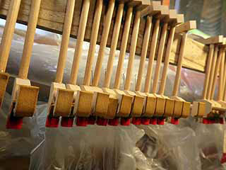 ピアノ底板を取り外して底板分解ぺだる部分解 さらに細部にわたってチェック点検磨きが始まります