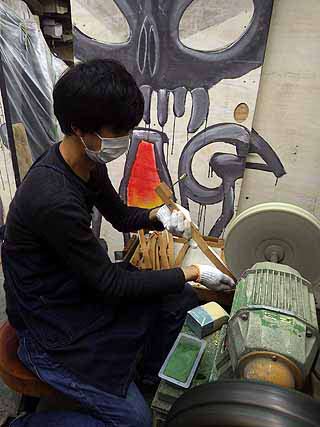 ハンマー整形ファイリング作業