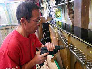 稲葉君、フォルテピアノ(1700年代)のピアノを直したりしている
