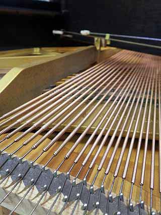 このコード1本でも切れると音が出なくなってしまう。ピアノはどの部品1個欠けても音が出なくなるようになっている