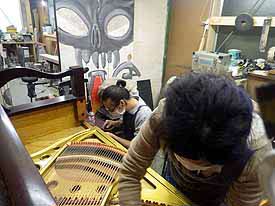 アトラスピアノ分解修理 ピアノを寝かして底板分解修理準備