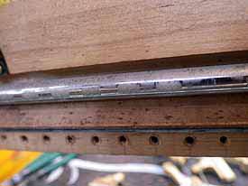 レバークロスにはスプーンの頭で干渉し穴が開いてしまったクロスが見える