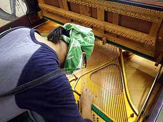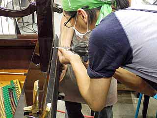 一から作り直す整調作業だ。調律師の腕の見せ所かもしれない。ピアピットではここはたっぷりt時間をかけただけの物(タッチ感)を手にできるところなので