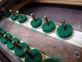 バランスキーピンフロントキーピンも磨きこみ作業、鍵盤運動の最初軸の部分