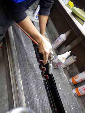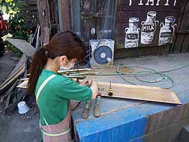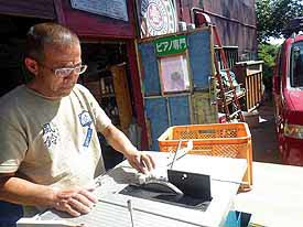 けん盤の木口のカッティング 危険が伴う機械を使うのでナベサンの仕事だ