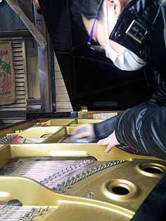 これから鍵盤の取り外しとけん盤をはがす作業が始まる