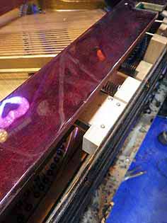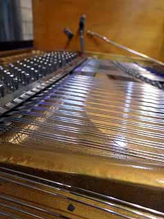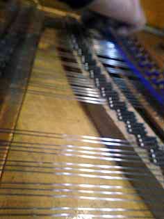 高音部、何本かは完全に切れている錆による断線だ、既に30年以上経っている木部の変形もありアクションンもだいぶ大きく狂いが生じてしまっている、