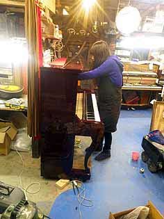 クリーベルピアノ 、弦が既に切れているのと、レバークロス等の穴あきで音が出ないところが多く