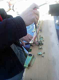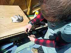 けん盤木口貼りこみ作業