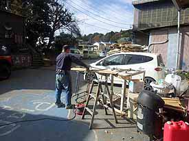 外でサンディング準備と掃除