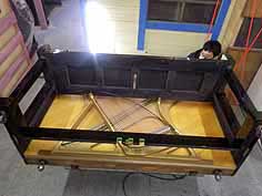 ピアノ本体をバフ室に持っていき寝かして底板等の分解