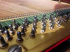 チューニングピンン磨き~弦の磨き作業ピアノは寝かすと見えなかったところまであらわに見える