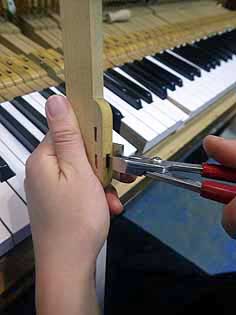 それより共鳴板が割れている、「これでは調律も安定しないので今回は充填剤で修理音色への損傷はほとんどないので安心だ
