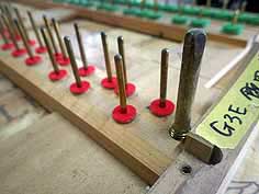 アクション筬から鍵盤ハンマー等を取り外してキーピンの磨き