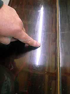 塗膜面の割れだ木目に沿って割れているがパッと見はわかりずらい よく目を凝らしてみてみるとわかる。傷が取れるとわかる