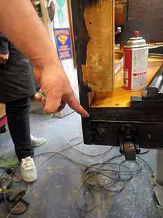 ピアノ親板〜突板までの外装関係のはがれ 足元ピアノ下部分が剥がれている