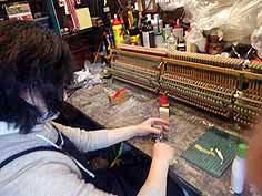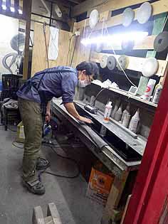 ハンマー整形ファイリング作業。音色に関係する重要なところだ