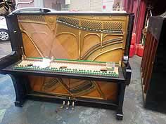 ピアノ寝かして底板の分解作業〜〜〜底板を止めているびすは全てさび付いてしまっている