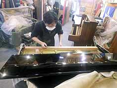 ピアノ本体バフがけ作業