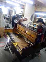 ピアノを寝かして底板等の取り外し〜^外装艶は出るのだろうがやれていい感じ
