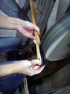 先ずはウィッペンヒールの再接着準備する古い接着剤を取り除く この部分だけではないぞ!