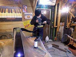 底板分解作業〜ピアノを寝かすと見えなかったところまであらわに見える