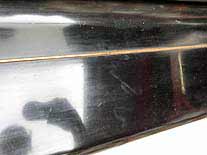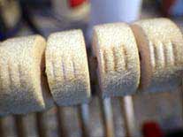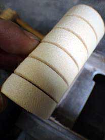 深くザクリとついた弦溝、これをファイリングで取り除く すでに変色切れてしまっているフレンジコード、