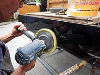 このコンパウンドのバフがけは辺り一帯粉じんとかす