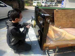 けん盤を取り外して鍵盤木口交換〜^バフがけ本体