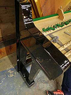 音色のかなめである弦さびは大敵だピアノを寝かして見えるところは綺麗に磨き上げる、ピアノの寿命にも大きくつながるところだ