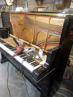 ピアノは寝かすことによりより細部にわたり点検チェックが可能だ